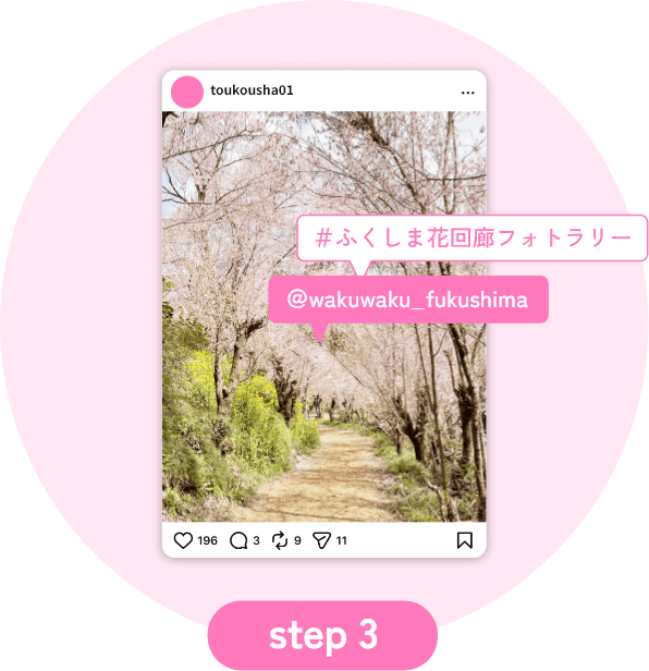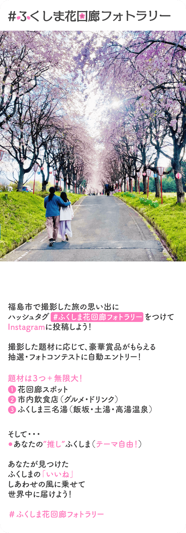 ハッシュタグ「#ふくしま花回廊フォトラリー」を付記し、福島市内のスポットを題材にした写真・動画を投稿している